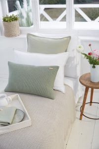 WeiterlesenDie Kissen in Salbeigrün, die Müslischalen in Aquablau, die Lampe im …